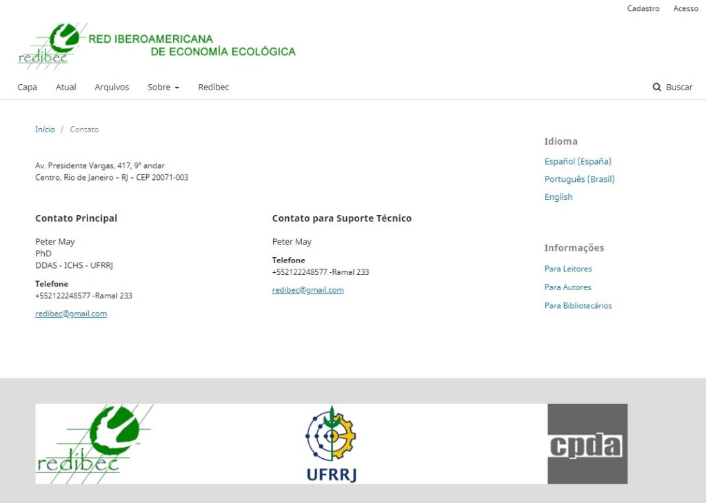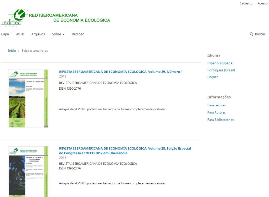 Desenvolvimento do site da REDE IBEROAMERICANA DE ECONOMIA ECOLÓGICA e sua revista eletrônica (REVIBEC) utilizando a plataforma OJS (Open Journal System).