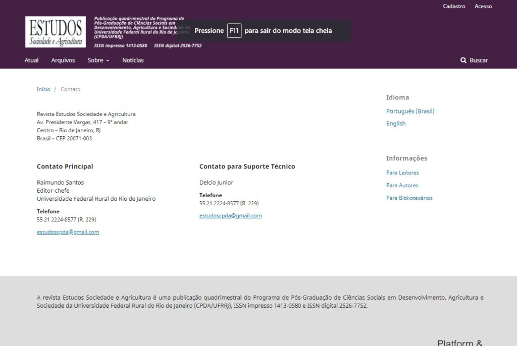 A revista Estudos Sociedade e Agricultura tem como missão divulgar no meio científico e acadêmico brasileiro e internacional resultados de pesquisa e reflexão sobre o mundo rural e suas transformações sob a ótica das ciências sociais e da interdisciplinaridade.